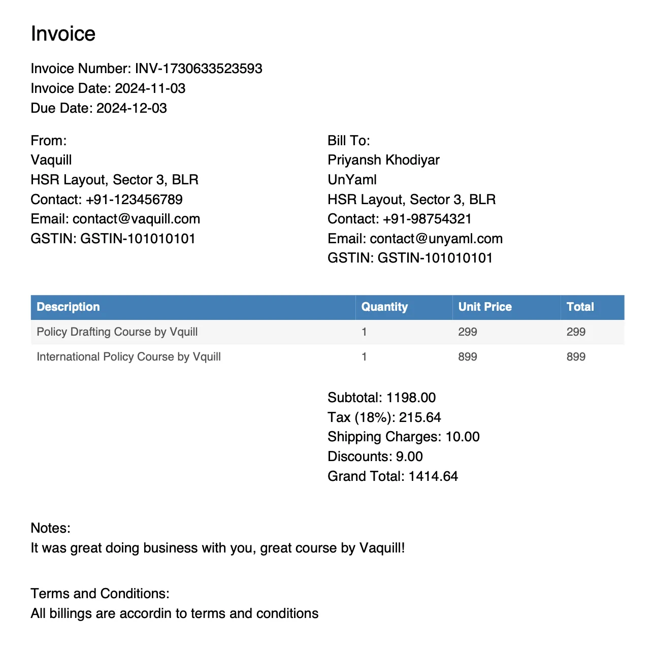 Free Invoice Generator by Vaquill